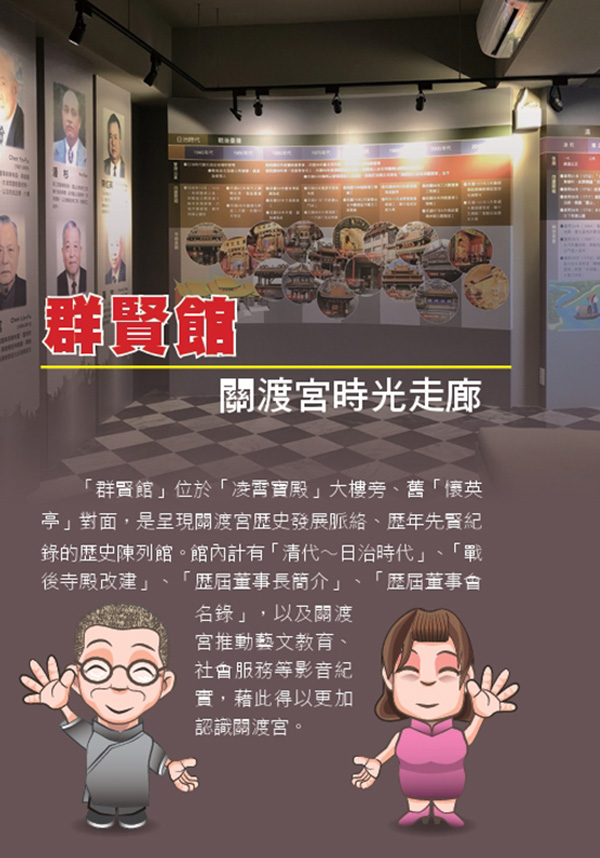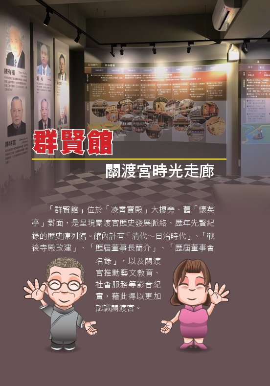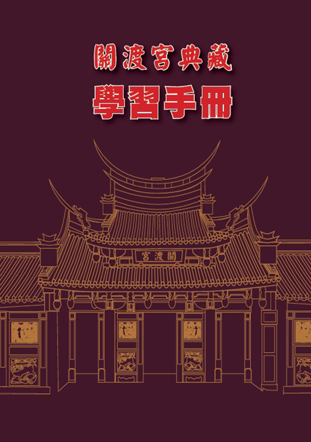 《關渡宮典藏:學習手冊》是將群賢館呈現的關渡宮歷史脈絡、干豆媽文化館的文物和關渡人文館的農具生活用品,以深入淺出、活潑生動的方式,讓參觀的信眾了解傳統建築工藝之美、民俗信仰、農耕農具,進而更加認識關渡宮,同時寓教於樂,亦可以做為國小最佳的鄉土教學的教材。