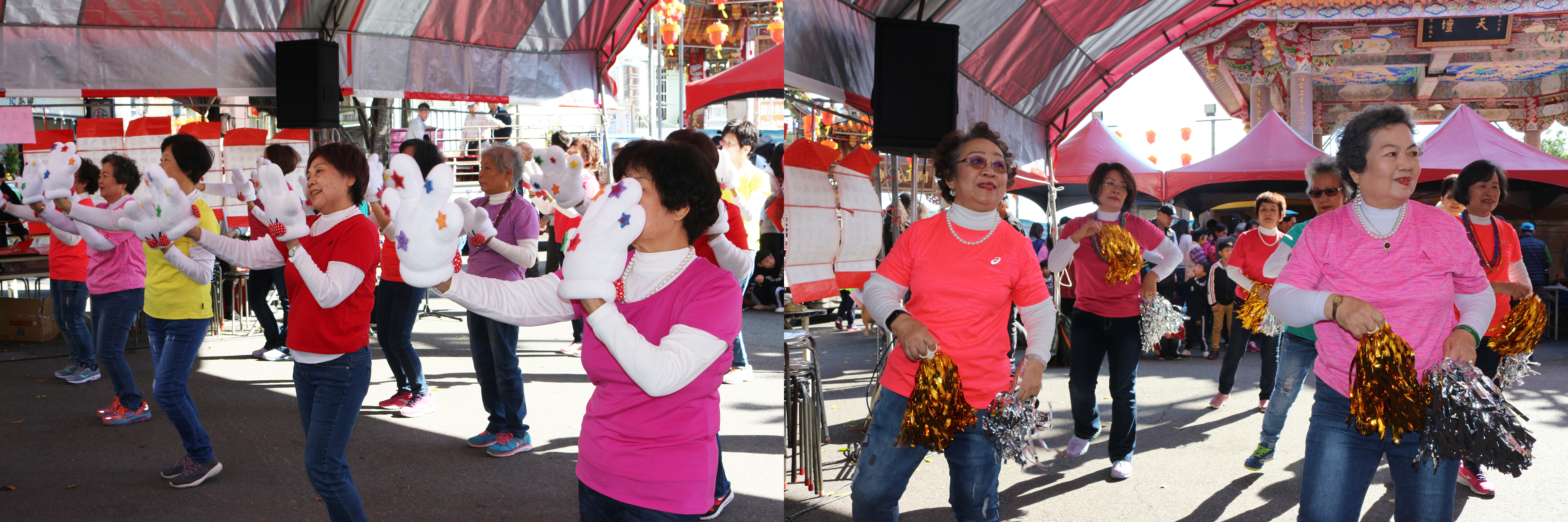 接著還有千歲樂齡活力舞動,琴韻悠揚的關渡胡琴班,魅力十足的日本舞蹈,最美的美聲的牽手唭哩岸合唱團,鼓陣隆隆的天華音體鼓舞團,舞姿優美的關渡舞蹈班,優美典雅的剴韻坊,活潑可愛的真之妨舞蹈團,以及優聲嘹饒竹苑藝坊。