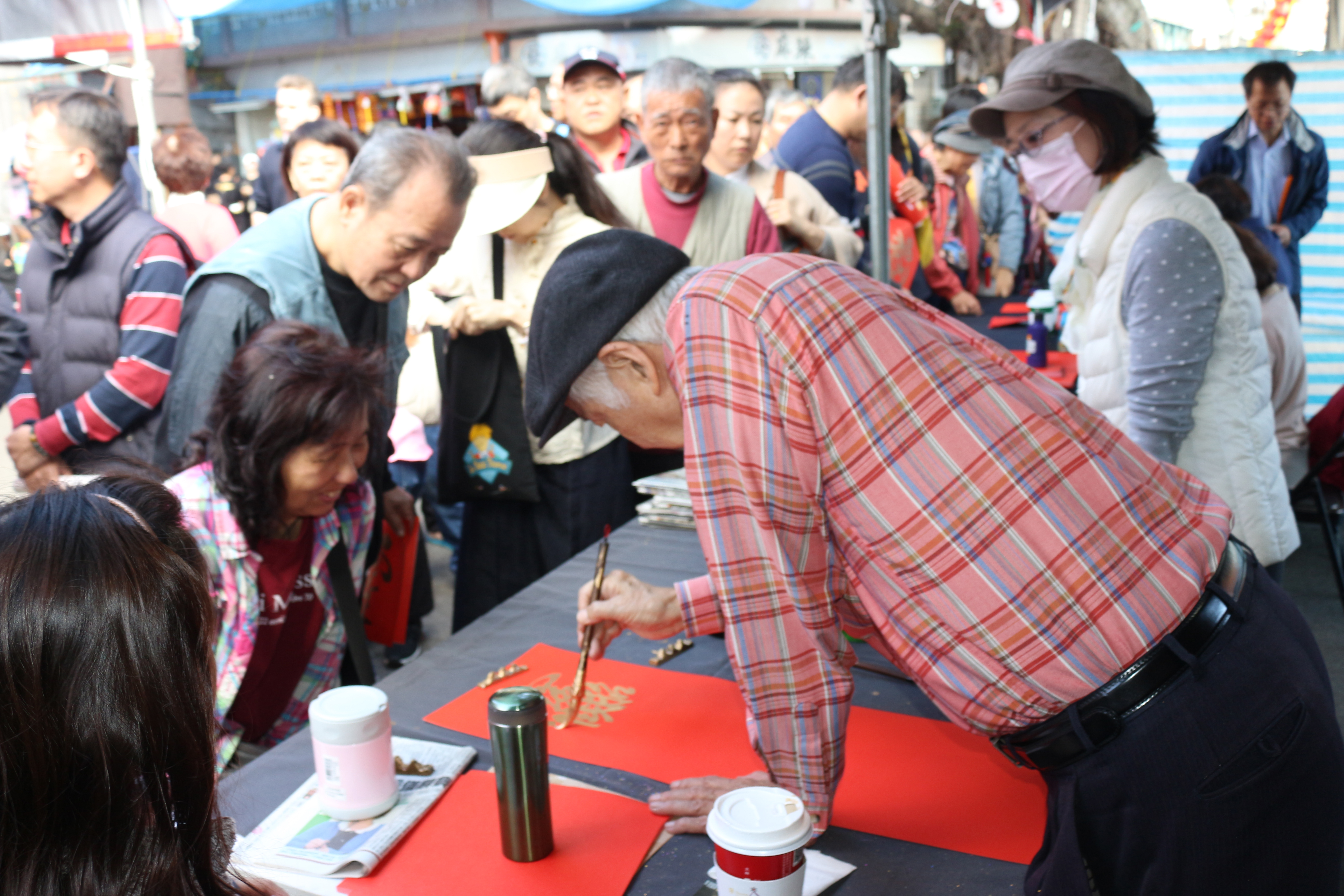 當然今天主要靈魂人物-現場10位揮毫大師們-讓現場民眾排隊人潮絡繹不絕,愛不釋手。活動在熱鬧歡樂氣氛圓滿結束,祝福各位新春愉快!