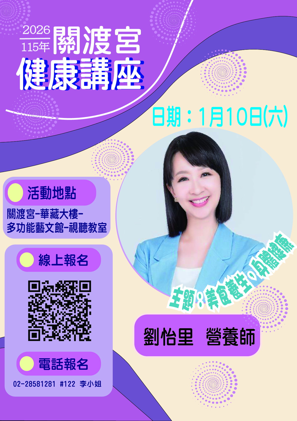 ▪️ 其它「關渡宮健康講座」為該場次日期前30天開放報名。